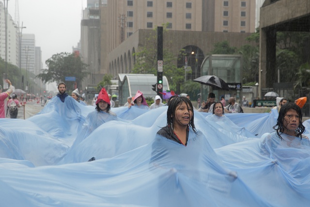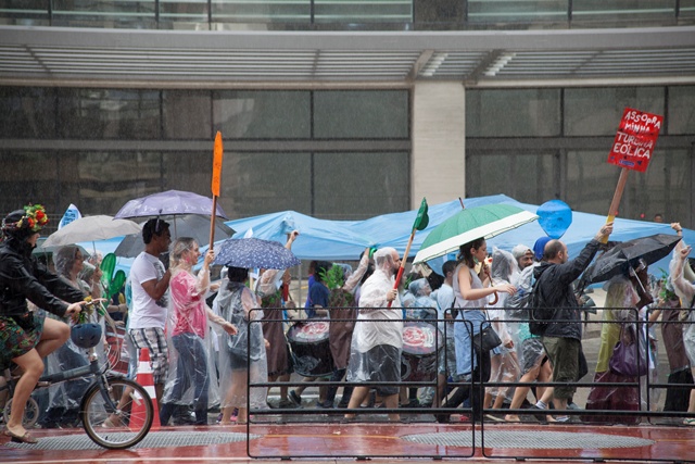 A manifestação em São Paulo teve samba-enredo, bateria e blocos temáticos, que expressavam a diversidade da agenda climática – crise hídrica, energia limpa, povos indígenas e desmatamento zero, por exemplo. A mobilização também abordou a tragédia ambiental causada pelo rompimento da barreira da mineradora Samarco em Minas Gerais. “Nós não podemos deixar de nos manifestar sobre o tema. Não foi um acidente”, disse a ativista Raquel Rosenberg, coordenadora do Engajamundo, que também organizou a marcha no Brasil.