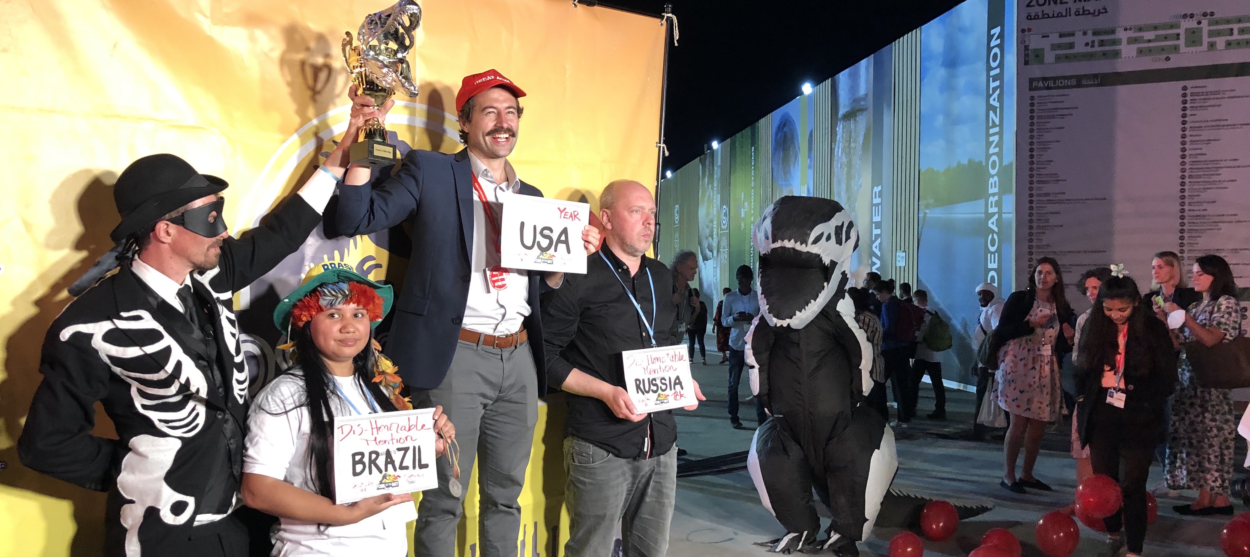 A premiação satírica encerrou com vaias a participação do governo de extrema-direita do Brasil em conferências do clima. Mais cedo, o ex-ministro do Meio Ambiente no cargo Joaquim Leite já havia sido flagrado embarcando num passeio para mergulhar entre os corais do Mar Vermelho – em plena manhã de intensas negociações na conferência.