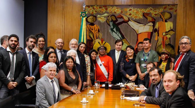 Presidente da Câmara recebe indígenas e diz que transferência de órgão para ministério dos Direitos Humanos, chefiado pela pastora Damares, "não parece o melhor caminho"